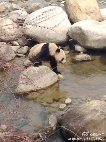 大熊貓受到驚嚇徘徊在河邊。(圖片來源于網(wǎng)絡)