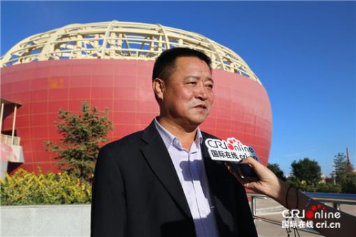 延安市洛川縣蘋(píng)果產(chǎn)業(yè)園區(qū)管理處主任安金海接受國(guó)際在線陜西頻道采訪(攝影 劉君慧) 國(guó)際在線陜西頻道報(bào)道(吳宇婷 劉君慧):“我們種的蘋(píng)果個(gè)兒大,一個(gè)個(gè)紅……