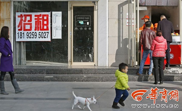 寒潮如期而至,2016年剛剛開始,古城西安已經(jīng)下了三場雪,溫度也越來越低。細心的你會發(fā)現(xiàn),走在大街小巷里,很多門面房是空的,而且空的店鋪都貼著招租、轉(zhuǎn)讓的……