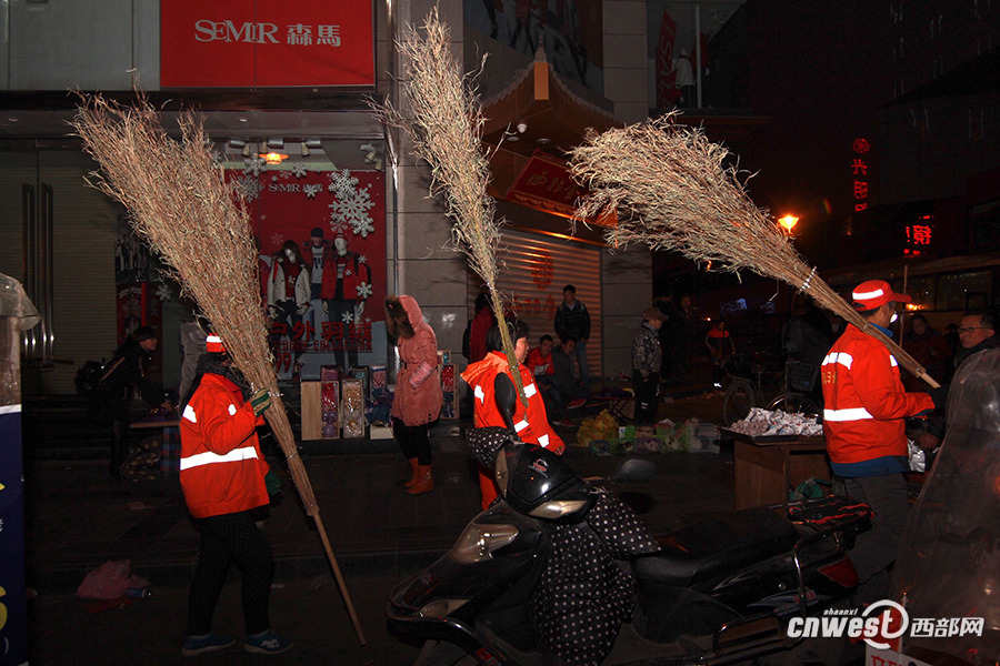 環(huán)衛(wèi)工人連夜出動,徹底掃完或到天亮。西部網(wǎng)訊(記者 趙昊 實習記者 劉望) 平安夜結束以后,稍早前人流密集的鐘樓、東大街、騾馬市步行街等處,地上殘留的垃圾……