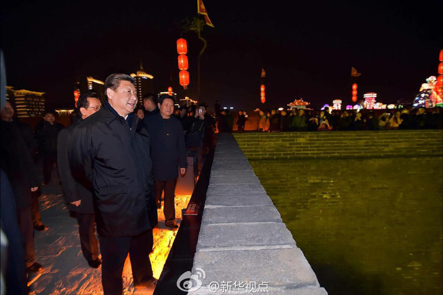 習(xí)近平總書(shū)記2月15日晚上登上西安古城墻,同市民親切交流。新華社記者霍小光、李學(xué)仁、李濤 攝……