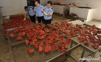 西安警方截獲17噸假牛肉 加工窩點現(xiàn)場令人作嘔