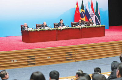 一是促進(jìn)金磚國(guó)家互利共贏。要發(fā)揮各自優(yōu)勢(shì),帶領(lǐng)工商界和金融界,將領(lǐng)導(dǎo)人共識(shí)轉(zhuǎn)化為具體行動(dòng),落實(shí)《金磚國(guó)家經(jīng)濟(jì)伙伴戰(zhàn)略》,拉緊利益紐帶,實(shí)現(xiàn)共同發(fā)展。