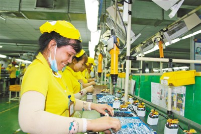 | 越南前江省龍江工業(yè)園內(nèi),浙江方正電機(jī)越南子公司的生產(chǎn)線(xiàn)上,當(dāng)?shù)貑T工正在工作。 |