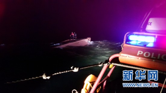 1月21日,韓國海警在韓國以西海域?qū)A覆的疑似中國漁船實施救援。新華社發(fā)(韓國仁川海警供圖)