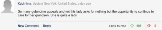 美國紐約的網(wǎng)友Kabimima:“眾籌平臺(tái)GoFundMe上有各種訴求,而這位女士卻沒有要求任何東西,只是想要能夠繼續(xù)送她的孫子上學(xué)。她真是了不起!