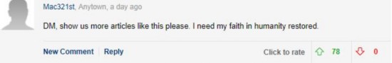網(wǎng)友Mac321st:“請多寫些這樣的報(bào)道。他們的故事讓我重拾對人性的信心。”