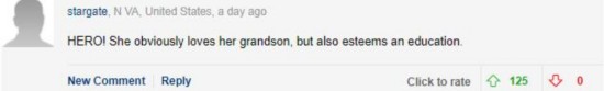 美國弗吉尼亞州的stargate說:“她真是個(gè)英雄。她關(guān)愛自己的孫子,而且了解教育的重要性!保ㄌ祗P)