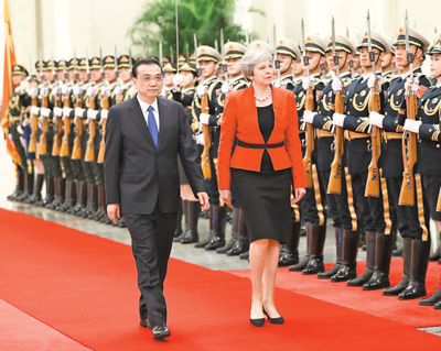 本報北京1月31日電 (記者趙成、杜一菲)國務(wù)院總理李克強1月31日下午在人民大會堂同來華進行正式訪問的英國首相特雷莎·梅舉行中英總理年度會晤。