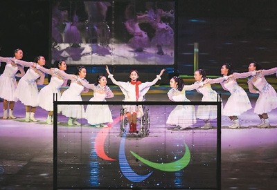 3月18日,2018年平昌冬殘奧會閉幕式在韓國平昌奧林匹克體育場舉行。閉幕式北京文藝表演上,現(xiàn)場大屏幕播放了北京2022年冬殘奧會會徽“飛躍”短片,集中展現(xiàn)了殘疾人運動員以堅強的意志作為精神的翅膀,在冬殘奧賽場上放飛青春夢想。伴隨著主題歌《我要飛》,中國殘疾人藝術團的聽障演員們奉獻了一場精彩表演。NSv安康新聞網(wǎng)