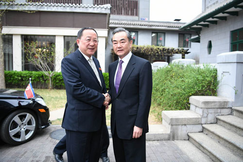 人民網(wǎng)北京4月3日電 據(jù)外交部網(wǎng)站消息,3日下午,國(guó)務(wù)委員兼外交部長(zhǎng)王毅會(huì)見(jiàn)正在北京過(guò)境的朝鮮外相李勇浩。