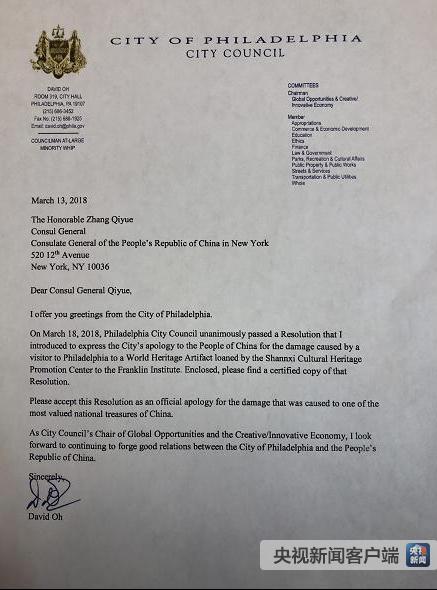 目前,該作案男子被逮捕后保釋,正在等待法庭的審判,面臨最高可達有期徒刑30年的判決。而另一方面,費城市政府在日前通過了一份決議,正式向中方進行書面道歉。