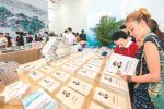 2017年9月2日,前來廈門采訪金磚國家領(lǐng)導(dǎo)人廈門會晤的中外記者,在新聞中心選取不同語言版本的《習(xí)近平談治國理政》……