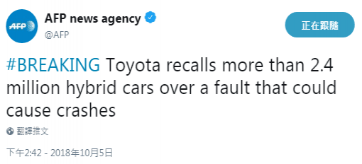 【環(huán)球網(wǎng)報(bào)道 記者 崔舒飛 張飛揚(yáng)】據(jù)法新社5日最新消息,因發(fā)現(xiàn)存在可導(dǎo)致車禍的錯(cuò)誤,豐田汽車公司召回超過240萬輛混合動(dòng)力車。 據(jù)路透社報(bào)道,此次召回包括……
