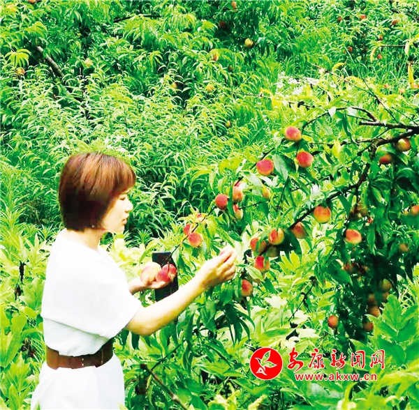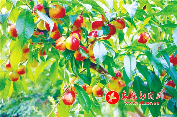 青山環(huán)繞,綠水相依。走進(jìn)白河縣倉(cāng)上鎮(zhèn)石關(guān)村桃言溪的果園,陣陣桃香撲鼻而來(lái)。緊跟夏日的腳步,油桃、黃桃、水蜜桃掛滿枝頭,一個(gè)個(gè)色澤鮮艷,光亮紅潤(rùn),令人賞心悅目。