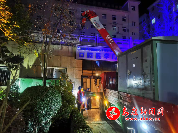 國網(wǎng)白河縣供電公司立即組織人員前往醫(yī)院查看故障情況,發(fā)現(xiàn)醫(yī)院專變的變壓器因高負(fù)荷燒毀,需要更換變壓器。下午7時,工作人員一邊幫助醫(yī)院協(xié)調(diào)轉(zhuǎn)運變壓器設(shè)備,一邊緊急調(diào)用一臺50千瓦的發(fā)電車,并迅速為醫(yī)院進(jìn)行電源接入,第一時間為醫(yī)院的核酸檢測點、疫苗冷藏室、急診等優(yōu)先供電。