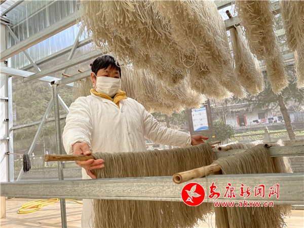 伴著明媚的春光,走進(jìn)焦贊村的招牌企業(yè)--白河縣希望農(nóng)產(chǎn)品加工合作社,一桿桿紅薯粉條正在懸掛、晾曬、消凍。生產(chǎn)車間內(nèi)熱氣騰騰,六七名工人組成一條生產(chǎn)線,經(jīng)過打芡、撈粉、晾粉等多道工序,金燦燦的紅薯粉條便成型了。憑借著質(zhì)量過硬、口碑好,合作社生產(chǎn)的紅薯粉條和洋芋粉在市場(chǎng)上很走俏,并與西安電子科技大學(xué)和縣內(nèi)外學(xué)校企業(yè)達(dá)成了長(zhǎng)期供貨協(xié)議。