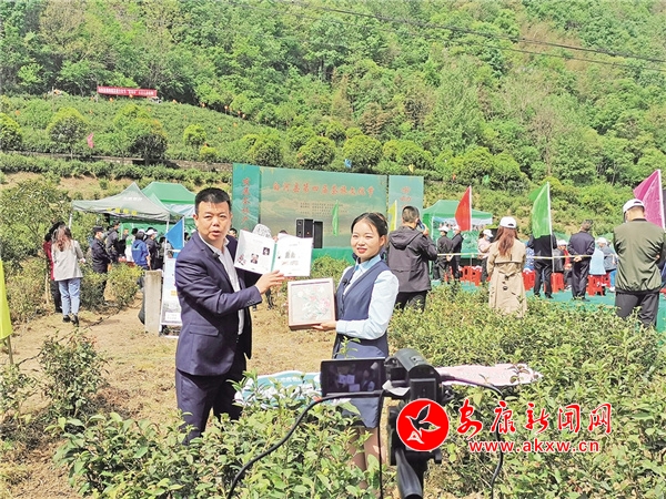 白河縣郵政公司將直播間搬進(jìn)茶旅文化節(jié)主會(huì)場(chǎng),直播推介白河茶葉文創(chuàng)產(chǎn)品。陳俊 攝