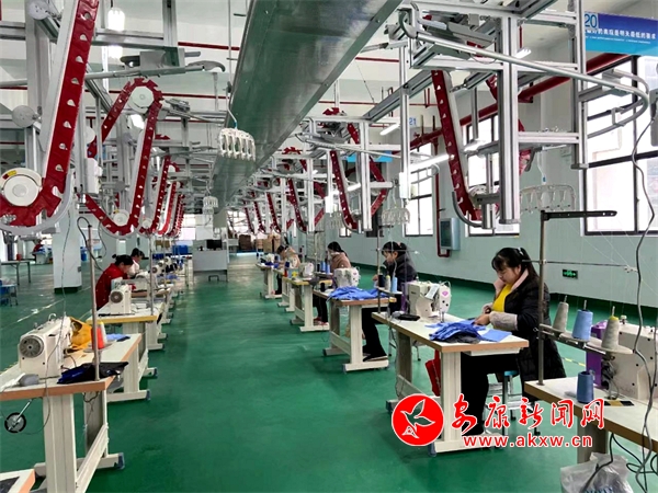 “這里工作時間相對自由,多勞多得,一個月能掙三四千。”在陜西北方核防護科技有限公司的生產(chǎn)車間內(nèi),年產(chǎn)15萬件核防護服全智能吊掛生產(chǎn)線有序運轉(zhuǎn),一排排機器整齊排列,機器轟鳴聲回蕩在廠房間,家住雙豐鎮(zhèn)掃金村的李方珍正手拿布料,嫻熟地用縫紉機縫制服裝。