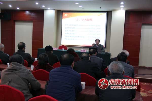 安康新聞網訊(通訊員 楊浩)為進一步深入學習貫徹黨的十八屆五中全會精神,11月25日上午,漢濱區(qū)委老干局組織全區(qū)離退休干部、各單位老干專干、老干局全體機關干部共計200余人,在安康金都國貿四樓二號會議廳舉辦老干部學習黨的十八屆五中全會精神報告會,安康市理論宣講團副團長趙富振同志為全區(qū)老干部做黨的十八屆五中全會精神輔導報告。