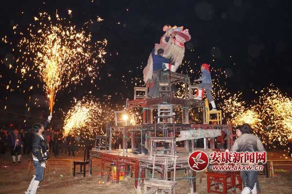今年春節(jié)期間,漢濱區(qū)各鎮(zhèn)辦組織群眾在拜年之余,紛紛投入到了燈節(jié)活動(dòng)中。恒口鎮(zhèn)、張灘鎮(zhèn)組織文藝宣傳隊(duì)到每一個(gè)村給群眾拜年,受到了群眾的熱烈歡迎;五里鎮(zhèn)龍頭村、江北辦中渡村,新城辦大樹嶺村提前對(duì)龍獅、高蹺、火龍、民歌、鑼鼓表演等傳人進(jìn)行了訓(xùn)練,把鄉(xiāng)村定格在春節(jié)的在歡樂當(dāng)中;城鄉(xiāng)群眾為參加展演創(chuàng)編的節(jié)目更加豐富多彩,在保留傳統(tǒng)優(yōu)勢(shì)節(jié)目的基礎(chǔ)上,;瘕埖年(duì)伍紛紛復(fù)出。大同鎮(zhèn)魯家村的火龍表演更是成為了安康耍火龍的一大景觀,從正月初九開始,全村無論是近百歲的老人,還是蹣跚學(xué)步的幼童都將參與其中,在縫制龍衣時(shí),全村幾百名婦女將一齊上陣,;瘕垥r(shí)村上從十五六歲的學(xué)生到八十歲的耄耋老人爭(zhēng)相搶過龍把子,把火龍耍得威風(fēng)八面。