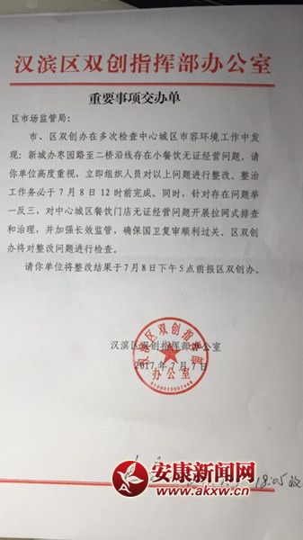 這只是漢濱區(qū)市場監(jiān)督管理局新城市場監(jiān)督管理所在國衛(wèi)復(fù)審“三小”行業(yè)整治中的一個縮影,據(jù)了解,該所按照漢濱區(qū)市場監(jiān)督管理局統(tǒng)一安排部署,從6月22日開始進行國衛(wèi)復(fù)審“三小”行業(yè)專項整治,采取“局所一體,分片包干,責任到人”的辦法,晝夜奮戰(zhàn),逐戶規(guī)范,取得良好效果。