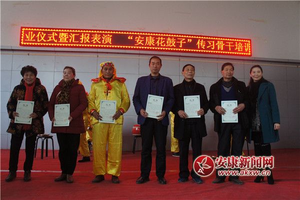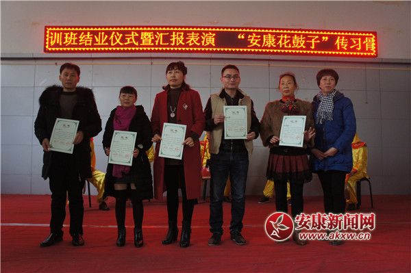 安康新聞網(wǎng)訊(通訊員 惠星 年靜) 12月2日,由安康市非遺保護中心、漢濱區(qū)文化館、區(qū)非遺保護中心共同舉辦的“把根留住•我眼中的非遺——安康花鼓子傳習骨干培訓班結(jié)業(yè)儀式暨匯報表演”在安康市漢濱區(qū)文化館隆重舉行,首期參加培訓的40名學員現(xiàn)場展示學習成果,并獲得結(jié)業(yè)證書。