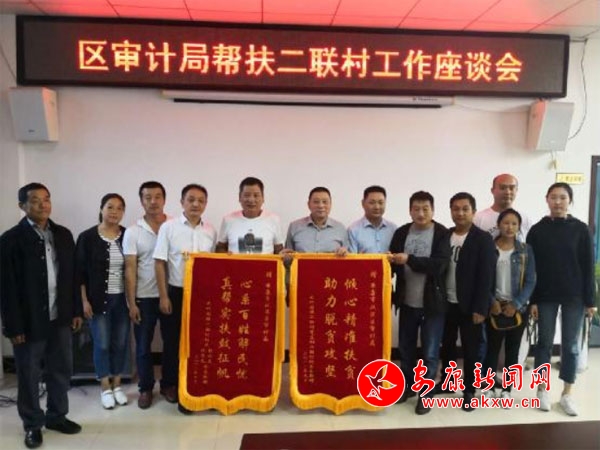 安康新聞網(wǎng)訊(通訊員 陳澤榮)9月14日上午,區(qū)審計(jì)局迎來了一批特殊的客人——漢濱區(qū)大竹園鎮(zhèn)人大主席余尚坤、二聯(lián)村“兩委”班子主要負(fù)責(zé)人和部分村民代表,他們冒雨前行,代表村委會和當(dāng)?shù)刎毨罕姡蛠砹藘擅嬗∮?ldquo;傾心精準(zhǔn)扶貧 助力脫貧攻堅(jiān)”和“心系百姓解民憂 真幫實(shí)扶鼓征帆”的錦旗,衷心感謝區(qū)審計(jì)局3年來在精準(zhǔn)扶貧工作中對二聯(lián)村和二聯(lián)村全體貧困戶的大力幫扶。