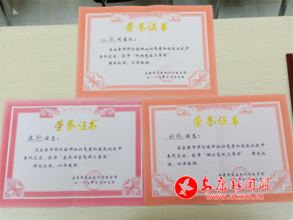 安康新聞網(wǎng)訊(通訊員 張翔) 近日,漢濱區(qū)代表隊(duì)參加了市衛(wèi)生計(jì)生局舉辦的安康市第一屆預(yù)防接種技能大賽。本次大賽分為個(gè)人賽和團(tuán)體賽,大賽設(shè)綜合筆試、資料評比、現(xiàn)場知識(shí)競答、家長課堂竟講四個(gè)環(huán)節(jié),經(jīng)過參賽選手們地激烈角逐和考評專家地認(rèn)真評定,我區(qū)榮獲團(tuán)體二等獎(jiǎng)和現(xiàn)場知識(shí)競答三等獎(jiǎng)好成績。另外漢濱區(qū)代表隊(duì)老城社區(qū)衛(wèi)生服務(wù)中心徐艷、流水鎮(zhèn)新壩衛(wèi)生院康艷同志還分別獲得個(gè)人綜合筆試和家長課堂竟講三等獎(jiǎng)。