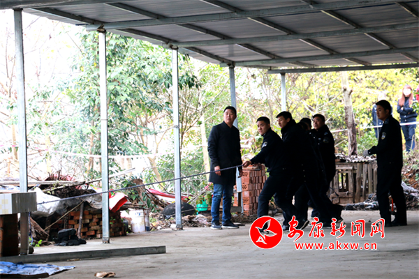 11月21日,違規(guī)彩鋼棚拆除現(xiàn)場,“兩違”管控隊使用角磨機、鋼釬、鐵錘等工具對彩鋼棚進行破壞性拆除,把違建的棚房磚墻向內(nèi)推倒,避免拆除的磚石毀壞臨近的房屋。為維持拆除秩序,現(xiàn)場拉起了警戒線,項目指揮部成員、江北派出所執(zhí)法人員、江北辦“兩違”管控隊員共同維持著現(xiàn)場秩序。