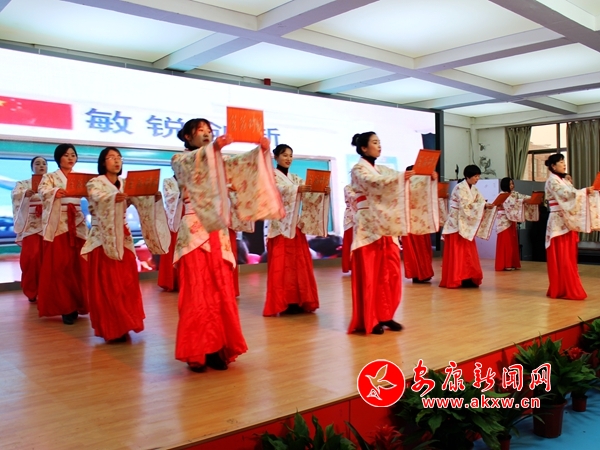 在“情系漢濱國培”文藝演出中,來自小學數(shù)學、小學語文、學前教育、中學語文、小學英語、中學英語、中學數(shù)學等培訓團隊的師生們自編自導自演,展示了快板《說唱漢濱國培》《聲律啟蒙》吟誦、歌舞《歡樂頌》、詩經(jīng)串誦《美哉,詩經(jīng)》、《英語歌曲串燒》、詩朗誦《國培后會有期》、歌舞《如火青春》、合唱《國培暢想》等節(jié)目。他們載歌載舞,且吟且誦,用多種文藝形式,展現(xiàn)了各個培訓團隊的風采與魅力,展示了培訓老師及參培學員良好的綜合素養(yǎng)。