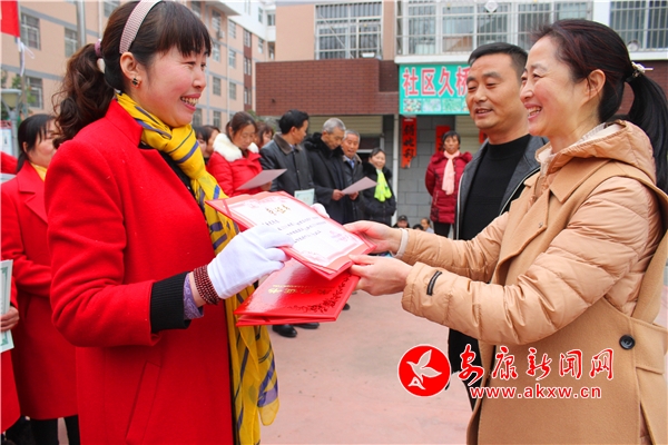 當(dāng)天的氣溫驟降,盡管天空中飄著零星雨絲,但仍擋不住學(xué)員們演唱“花鼓子”的熱情。在社區(qū)的百姓大舞臺上,鄧小娣、曹善蓮等學(xué)員爭先恐后上臺展示自己的學(xué)習(xí)成果,學(xué)員們每唱完一段花鼓子歌詞,田莊村鑼鼓隊的鑼鼓聲便鏗鏘有力響起來,臺上花鼓子悠揚動聽,臺下鑼鼓聲抑揚頓挫,雙方配合的十分默契。花鼓子獨唱表演結(jié)束后,大家一起手挽手、高興地走上舞臺,開始表演對唱、合唱,他們聲情并茂、字正腔圓的表演把現(xiàn)場的氣氛一次次推向高潮,讓前來觀看演出的群眾如癡如醉。隨后,早陽鎮(zhèn)文化綜合服務(wù)站負責(zé)人為22名學(xué)員頒發(fā)了結(jié)業(yè)證書,漢濱區(qū)非物質(zhì)文化遺產(chǎn)保護中心的干部為早陽鎮(zhèn)3名傳承保護“非遺”工作先進個人頒發(fā)了榮譽證書。