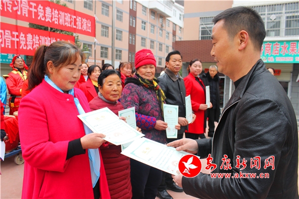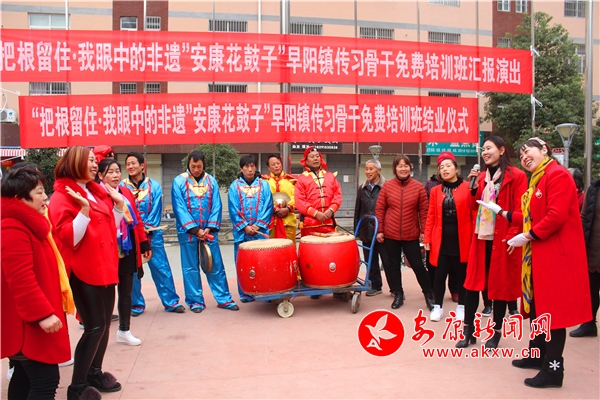 安康新聞網(wǎng)訊(通訊員 周濤 胡德良)12月23日,“把根留住•我眼中的非遺”“安康花鼓子”早陽鎮(zhèn)傳習(xí)骨干免費培訓(xùn)匯報演出暨結(jié)業(yè)儀式在漢濱區(qū)早陽鎮(zhèn)共進社區(qū)舉行, 22名學(xué)員通過嚴格考核后順利結(jié)業(yè),這也是漢濱區(qū)文化館、漢濱區(qū)非物質(zhì)文化遺產(chǎn)保護中心首次將省級非物質(zhì)文化遺產(chǎn)保護項目——“安康花鼓子”免費培訓(xùn)延伸到鄉(xiāng)鎮(zhèn)。