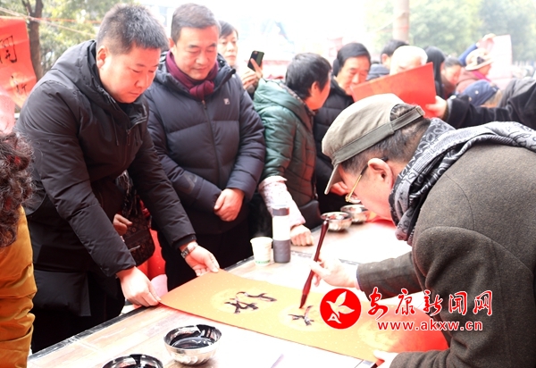 活動(dòng)現(xiàn)場,八位著名書法家手持毛筆,嫻熟轉(zhuǎn)動(dòng)手腕, 安康日報(bào)社張思成社長剛把紅紙鋪開就被居民里三層外三層圍了起來,頃刻間,一副洋溢節(jié)日喜慶的“春臨大地百花艷 福至靈芝萬象新”春聯(lián)就寫好了。捧著稱心滿意的春聯(lián),劉先生連聲道謝。