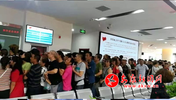 本網(wǎng)訊(通訊員 肖瑤)7月26日,筆者來(lái)到遷址后的安康市公安局漢濱分局交警大隊(duì)車管所和誠(chéng)鵬機(jī)動(dòng)車登記服務(wù)站,早上8點(diǎn),盡管漢濱區(qū)政務(wù)服務(wù)中心還沒正式開放,大廳門前早已人聲鼎沸,前來(lái)辦業(yè)務(wù)的群眾自覺排起兩路長(zhǎng)長(zhǎng)的隊(duì)伍,服務(wù)中心安保人員在做好秩序維護(hù)的同時(shí)預(yù)約排號(hào)。