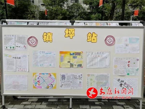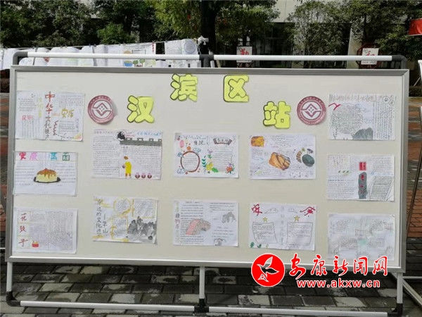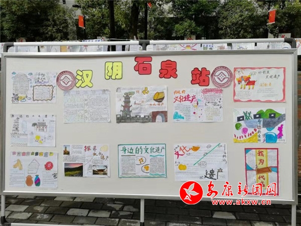 此次展板按地域文化特色,分為漢濱區(qū)站、旬陽(yáng)平利站、漢陰石泉站、鎮(zhèn)坪站、紫嵐寧站五大板塊。每一張手抄報(bào),從設(shè)計(jì)到排版,從書寫到繪畫,都各具特色:這里面有對(duì)壯美河山的贊美,有對(duì)雄偉建筑的欽佩,有對(duì)安康區(qū)縣奇觀異景、民俗文化的自豪……圖文并茂的手抄報(bào)吸引了全校師生駐足觀賞,嘖嘖稱贊,更有學(xué)生拿著紙筆認(rèn)真地做記錄。