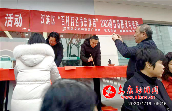 本網(wǎng)訊(通訊員 王艷 劉長(zhǎng)青 趙小順)“迎新春、貼春聯(lián)”是中華民族的傳統(tǒng)文化,突顯了年味民味,一副副精美的春聯(lián),蘊(yùn)含著辭舊迎新的美好祝福。2020年1月16日,漢濱區(qū)文化旅游廣電局、漢濱區(qū)文化館、新城街道辦分館在巴山中路舉辦“百村百名書法作者”義寫和2020年“文化小康行動(dòng)——萬副春聯(lián)進(jìn)農(nóng)家”活動(dòng)。