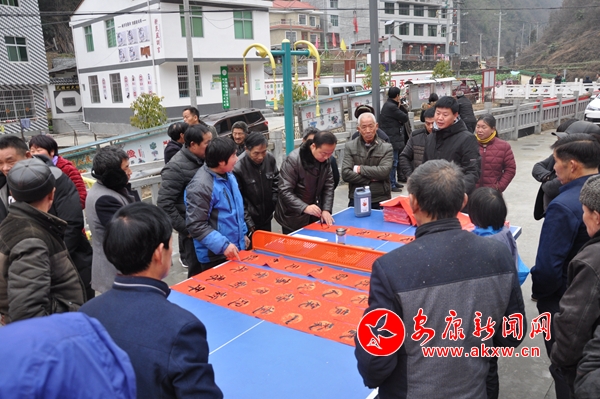 “這春聯(lián)還是手寫(xiě)的好,過(guò)年的氣氛一下就有了。”“文化站請(qǐng)的老師寫(xiě)的真好,貼到門(mén)上體面喜慶又吉祥,我還要請(qǐng)邱老師再給寫(xiě)幾副窗聯(lián)。”在場(chǎng)的群眾互相交流說(shuō)道。