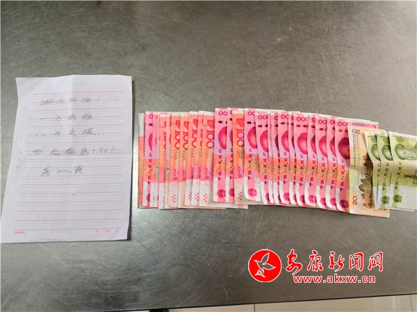 打開紙包,里面是整整齊齊的一沓錢,還有一個紙條。紙條上寫著:“湖北加油!一方有難,八方支援。勿忘安康7.30!工資”。