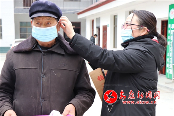“謝謝你們?yōu)槲覀兯蛠砹丝谡,我自己去藥店問了兩次都沒有買到口罩的,太謝謝你們了,作為一個(gè)獨(dú)生子女家庭,我深感榮幸。”臺(tái)竹村的獨(dú)生子女戶張甲地在接過防疫物品后,高興地說。