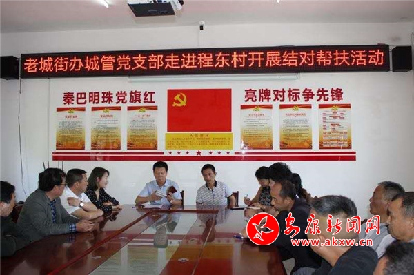 活動(dòng)中,老城街道城管黨支部與新城街道程?hào)|村黨支部締結(jié)為友好黨支部。老城街道城管黨支部書(shū)記康禮峰帶領(lǐng)支部黨員干部對(duì)程?hào)|村8戶(hù)特困戶(hù)進(jìn)行幫扶慰問(wèn),送去了慰問(wèn)物資和慰問(wèn)金。程?hào)|村黨支部書(shū)記李海軍介紹了該村基層組織建設(shè)、黨員管理以及全村脫貧摘帽等情況。老城街道黨工委汪建國(guó)書(shū)記以“抓黨建促優(yōu)勢(shì)互補(bǔ)、共建優(yōu)秀基層黨支部”為題為全體黨員干部做了一次宣講。