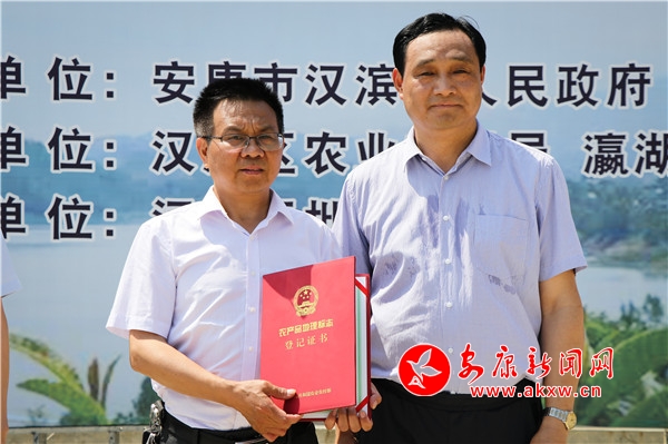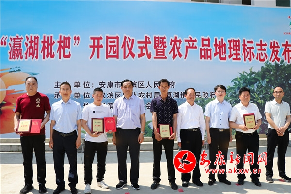 活動現(xiàn)場,陜西省農(nóng)產(chǎn)品質(zhì)量安全中心主任程曉東向漢濱區(qū)蠶茶果技術(shù)中心頒發(fā)了“瀛湖枇杷”農(nóng)產(chǎn)品地理標志證書。省市區(qū)領導向漢濱區(qū)農(nóng)興果業(yè)農(nóng)民專業(yè)合作社、漢濱區(qū)碧玉泉果業(yè)種植農(nóng)民專業(yè)合作社、安康天道酬勤農(nóng)業(yè)綜合開發(fā)有限公司、安康市康軒生態(tài)科技有限責任公司等首批“瀛湖枇杷”農(nóng)產(chǎn)品地理標志使用者頒發(fā)了準用證書并授牌。