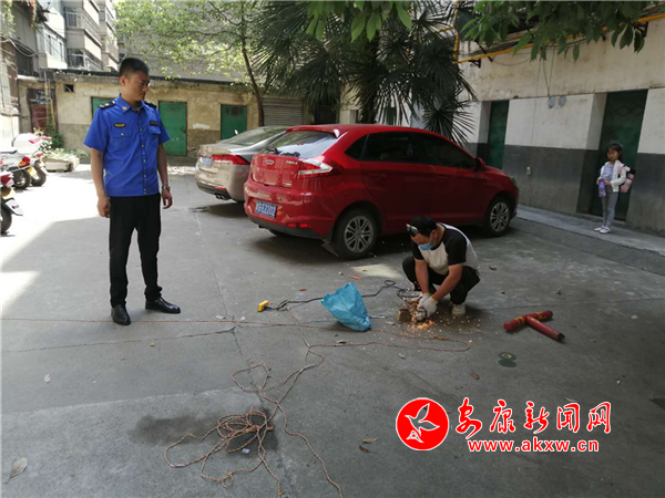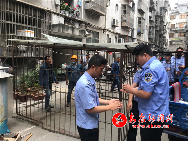 面對轄區(qū)的各種環(huán)境治理難題,鼓樓社區(qū)上下聯(lián)動,縱向請求支援,橫向詢求配合,聯(lián)合市住建局,環(huán)衛(wèi)所,老城創(chuàng)建辦、兩違辦,社區(qū)民警開展了一系列整治行動。開展整治行動之前,采取“打招呼、講政策”的方式告知居民群眾,針對“三堆六亂”問題,聯(lián)合環(huán)衛(wèi)所統(tǒng)一利用渣土車集中清理,針對小區(qū)私設“地樁”問題,口頭告知業(yè)主的同時,上報城管部門采取立即拆除措施。針對亂搭亂建問題,聯(lián)合老城創(chuàng)建辦、兩違辦限時拆除違章違建,針對下水管道口破損問題,采取填補硬化。