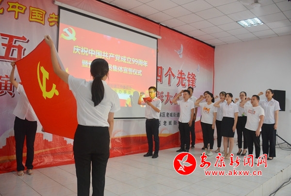 在領誓人的帶領下,街道新入黨的9名預備黨員握緊右拳,鏗鏘有力地宣讀入黨誓詞:“我志愿加入中國共產(chǎn)黨,擁護黨的綱領,遵守黨的章程,履行黨員義務,執(zhí)行黨的決定,嚴守黨的紀律,保守黨的秘密,對黨忠誠,積極工作,為共產(chǎn)主義奮斗終身,隨時準備為黨和人民犧牲一切,永不叛黨。”十二句話,句句千鈞,激勵著黨員們終身踐行入黨誓言,為黨的事業(yè)奮斗終身。