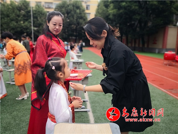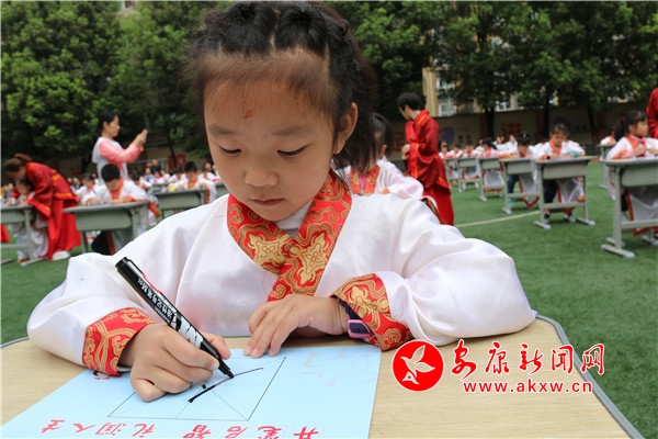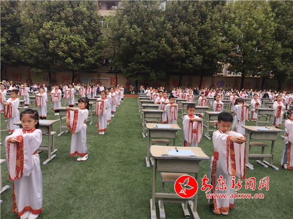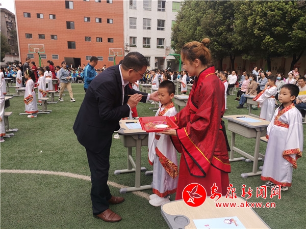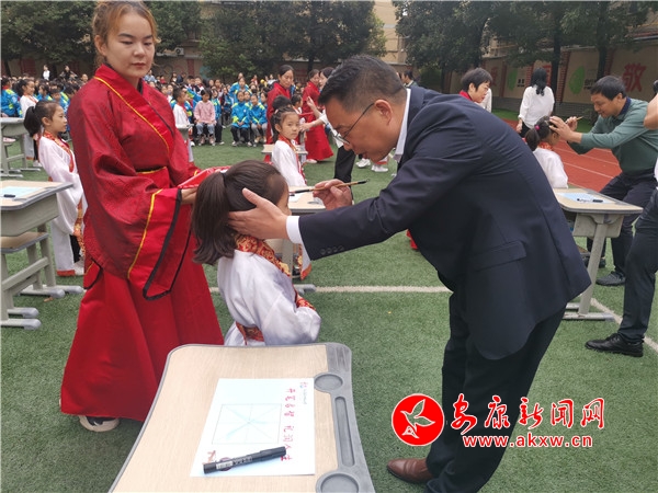 為讓一年級(jí)新生領(lǐng)略到中華民族傳統(tǒng)文化的魅力,9月23日上午,漢濱區(qū)江南小學(xué)攜手安康市博物館文廟管理所,隆重舉行了一年級(jí)新生“開筆禮”儀式,322名一年級(jí)新生開筆習(xí)禮學(xué)寫“人”字。開筆禮環(huán)節(jié)由安康文廟禮儀官趙琨主持。分為正衣冠、感恩鞠躬、朱砂啟智、擊鼓明志、啟蒙開筆等環(huán)節(jié)。通過系列活動(dòng),一年級(jí)新生感受到了知識(shí)及傳統(tǒng)文化的神圣,做“勤奮好學(xué)、端正品行、知書識(shí)禮、尊敬師長(zhǎng)”好少年的美好愿望已逐漸在孩子心田生根發(fā)芽。(劉改/圖文)