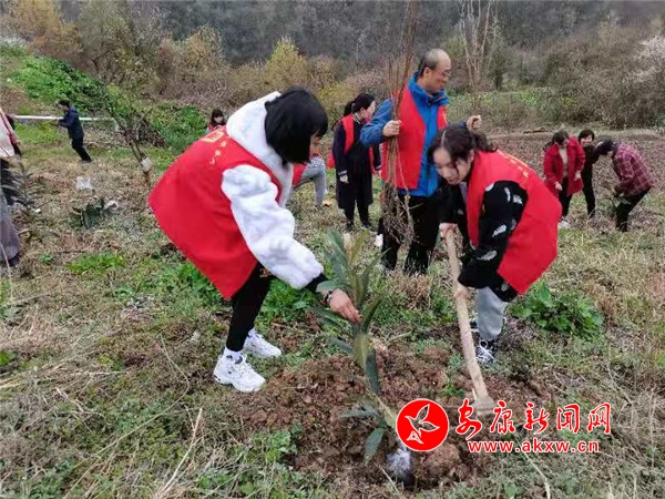 在植樹過程中,女同胞們分工合作、互相配合,有的揮鍬鏟土,有的扶樹填土,場(chǎng)面繁忙有序,氣氛歡快熱烈。經(jīng)過兩個(gè)小時(shí)的勞動(dòng),在大家的共同努力下,新栽下樹苗在山坡上構(gòu)成一道靚麗風(fēng)景線。3KE安康新聞網(wǎng)