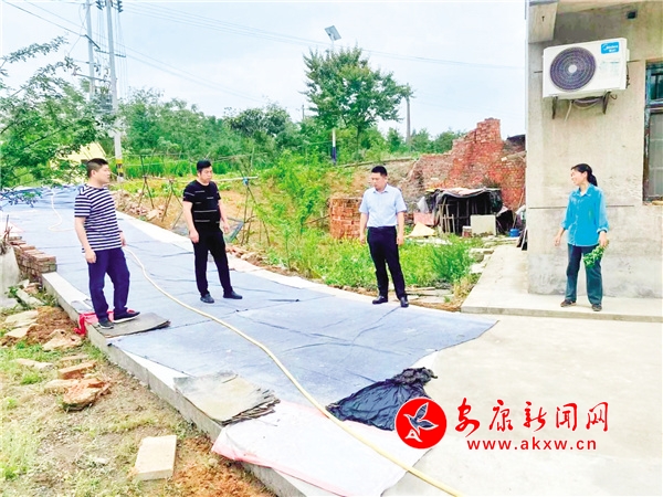 “今天澆水沒(méi)?路面有點(diǎn)干呀,這幾天可得勤澆水。”包村領(lǐng)導(dǎo)何啟偉指著剛硬化好的入戶路叮囑道。