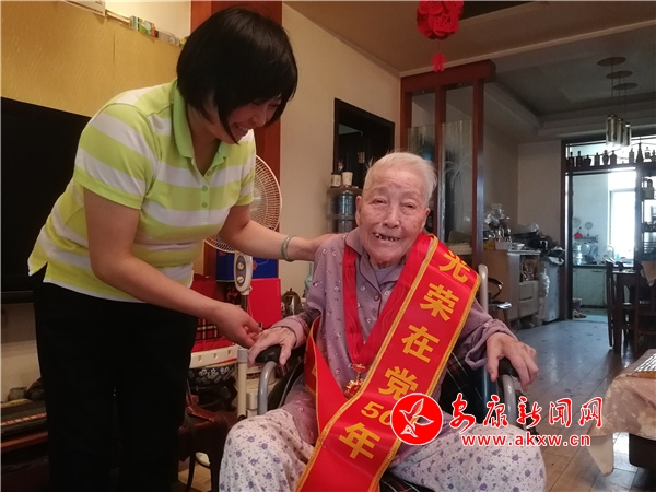 本網(wǎng)訊(通訊員 熊彬彬 劉晉安)在中國共產(chǎn)黨成立100周年之際,6月28號(hào)上午,漢濱區(qū)委、組織部、老城街道黨工委、培新街社區(qū)黨委組成慰問團(tuán)前往城區(qū)一小區(qū),看望慰問建國前入黨、有73年黨齡的老黨員宋玉琴同志,并送去了“光榮在黨50年”紀(jì)念章和中央及上級(jí)黨組織的慰問金。宋玉琴同志接過慰問金,激動(dòng)地說:“黨和各級(jí)組織,都沒有忘記我這個(gè)老黨員,非常感謝!”