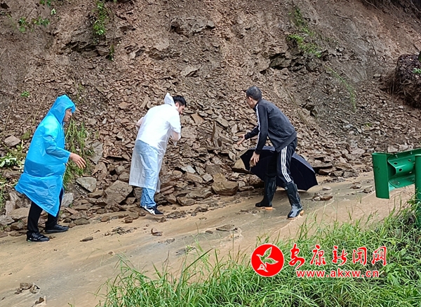 遇到小的落石淤積,應(yīng)急小隊(duì)從附近村民家里借來工具及時清理,沒有工具的手腳并用,也不落人后。“我們這也算得上是逢山開路遇水搭橋了。”在清除一處路上的落石積水后,支部書記付治國看著大家滿是泥濘的雙手和被泥水打濕的衣服開玩笑地說道。