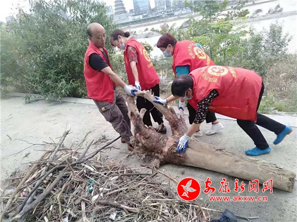 “草地上的那些浮草、枯枝和塑料袋,我們用垃圾車運走,有些木頭和大樹根得幾個人才抬得動,還有那些訊后的清淤沖沙工作難度較大。”大北社區(qū)護河員海燕說。9月8日,天氣放晴、水位逐漸下降后,老城街道辦事處創(chuàng)建辦迅速組織沿江各社區(qū)護河員開展?jié)h江環(huán)境衛(wèi)生清理整治,清掃河岸爛渣廢料,撿拾草地綠化帶垃圾雜物,沖洗淤泥河沙。截至目前,已清理汛后垃圾35車,清洗沖刷淤泥8000余平方米。目前,清理工作還在繼續(xù),老城創(chuàng)建辦帶領(lǐng)著這支護河隊伍緊張有序的忙碌著,河道和江邊的垃圾清理工作正穩(wěn)步推進。